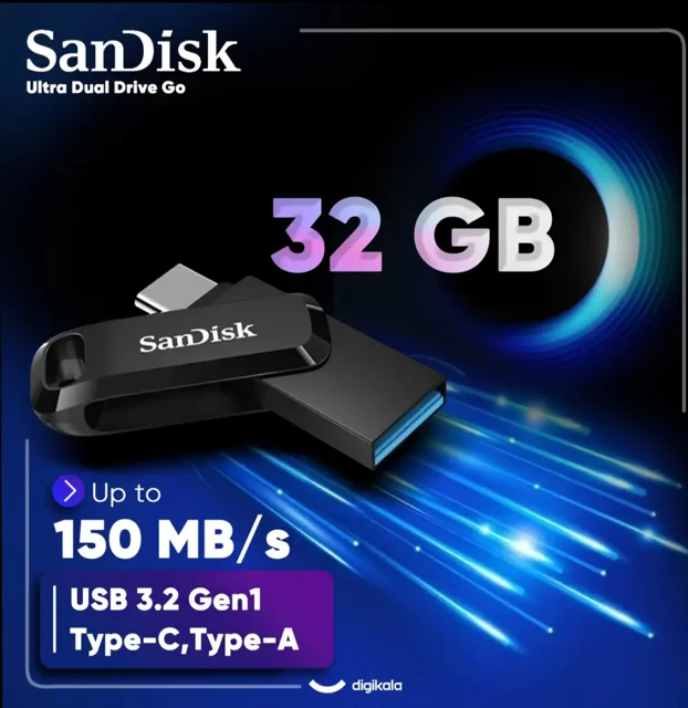 فلش مموری سن دیسک 32 گیگابایتی مدل Dual Drive Go USB Type-C با طراحی دو درگاه USB Type-C و USB 3.0، انتقال سریع دادهها و سازگاری با دستگاههای مختلف را فراهم میکند. ابزاری ایدهآل برای ذخیره و جابجایی اطلاعات به شکلی امن و کارآمد.