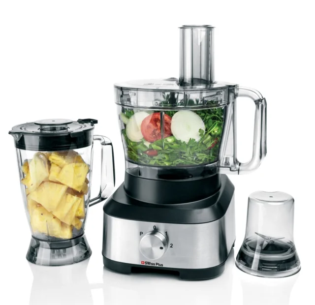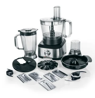 دارای ولوم چرخشی2سرعته دارای تیغه پلاستیکی و کاردک برای خمیر آسیاب آجیل.. ادویه جات..قهوه و زعفران دارای5صفحه مختلف برای خردکردن و برش دادن اب مرکبات گیر دو مخروطه تیغه های جدا شدنی استیل ضد زنگ:خردکن متوسط..خردکن ریز..خلال کن ریز و متوسط و درشت