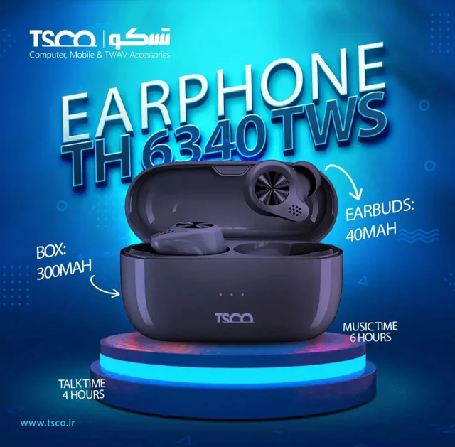 هدست بلوتوثی تسکو مدل TH6340 TWS با طراحی ارگونومیک و کیفیت صدای عالی، تجربه گوش دادن بیسیم را برای شما فراهم میکند. باتری با دوام، اتصال پایدار و کنترل لمسی از ویژگیهای برجسته این محصول است که مناسب مکالمه و موسیقی است.